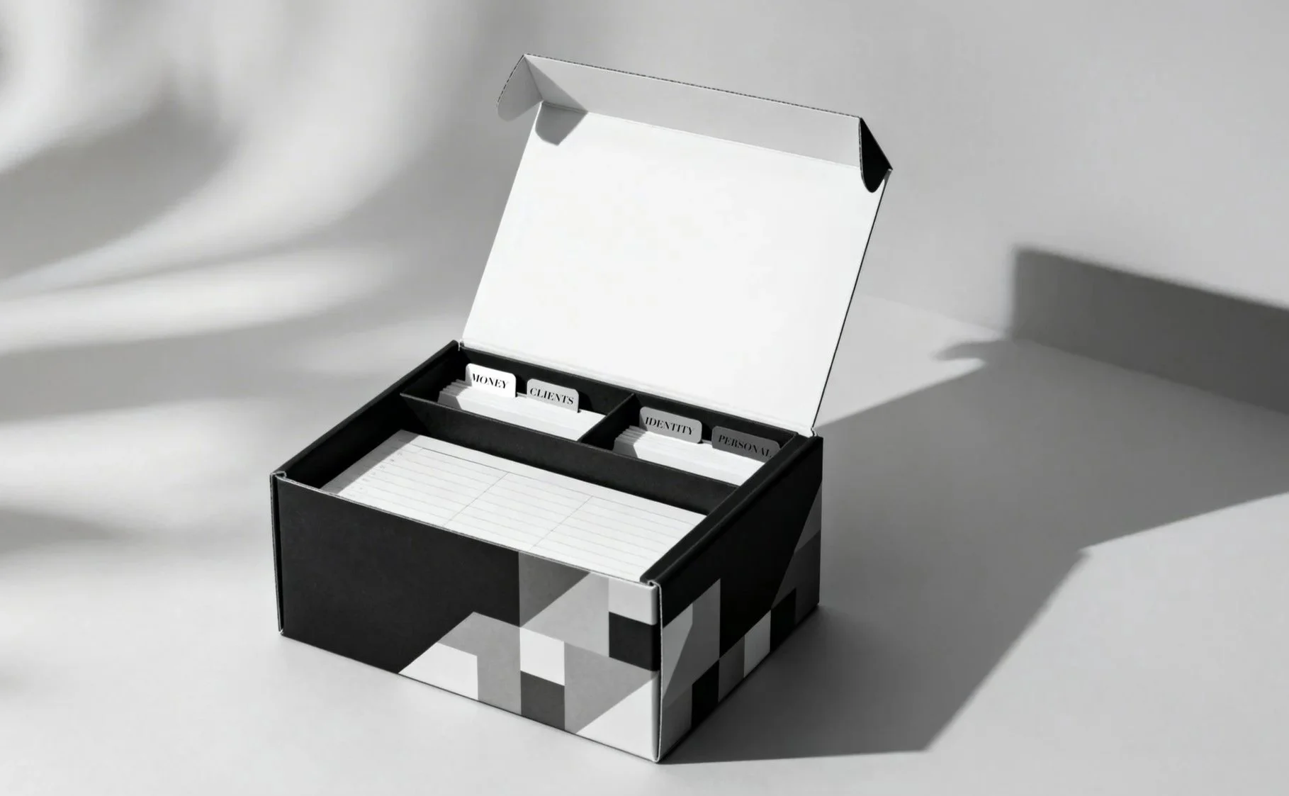 Symbolic Visual Language : Transforms cognitive clutter into layered compositions, fragmented grids, and controlled typographic tension, visually mirroring mental overload while guiding the eye toward order.
